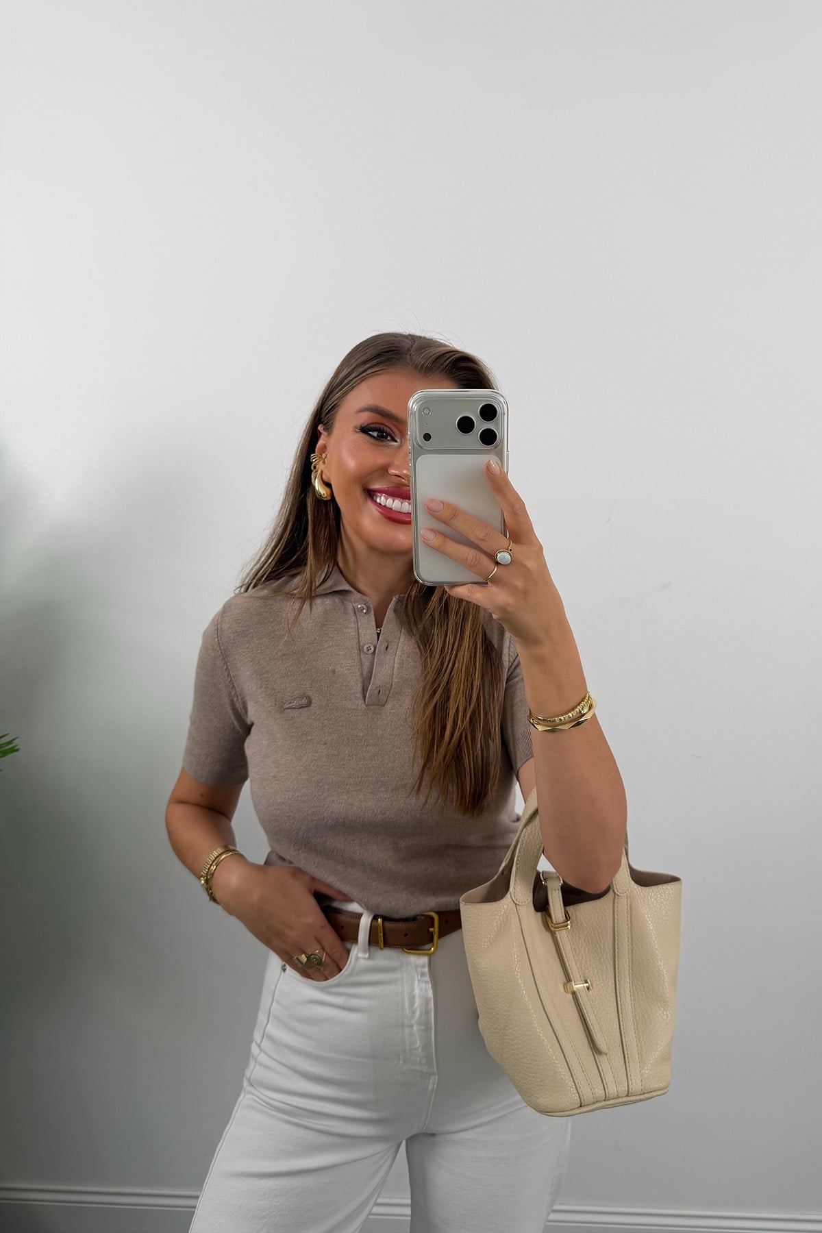 1. Sınıf Kalite Kaşmir Dokulu Polo Yaka Triko Vizon