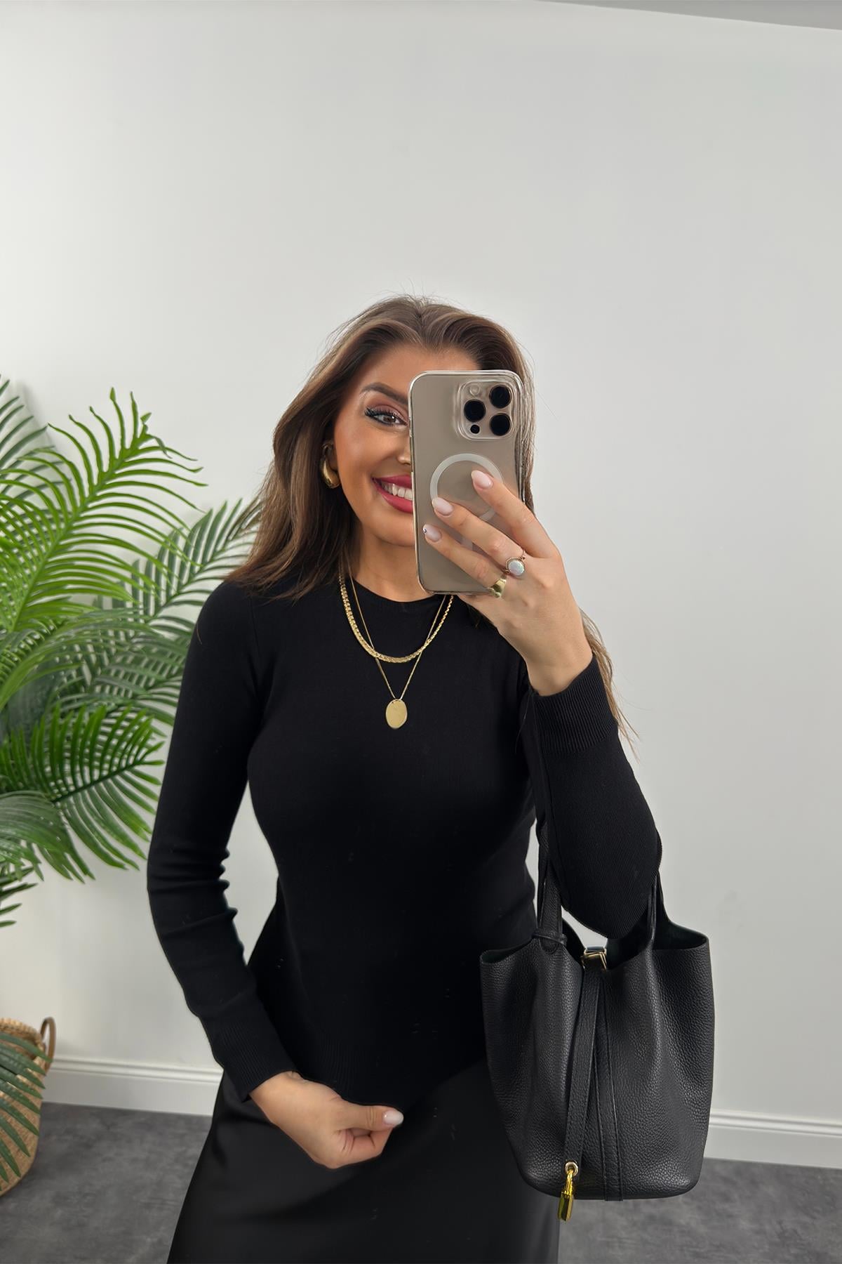 1. Sınıf Kalite Massi Model Kaşmir Dokulu Uzun Kol Basic Triko Siyah (A12922)