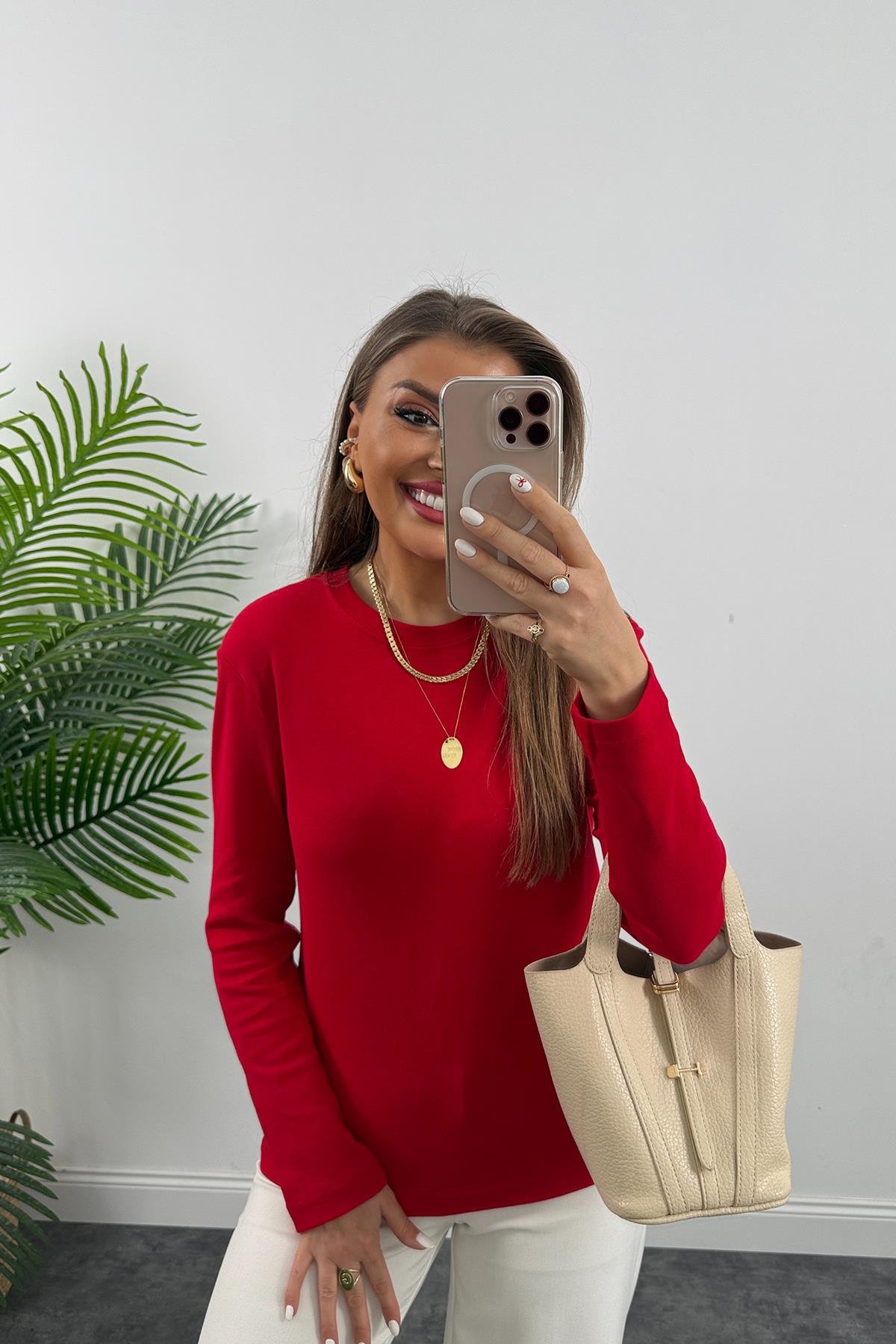 1. Sınıf Kalite  Massi Model Tam Pamuklu Uzun Kol Basic Kırmızı