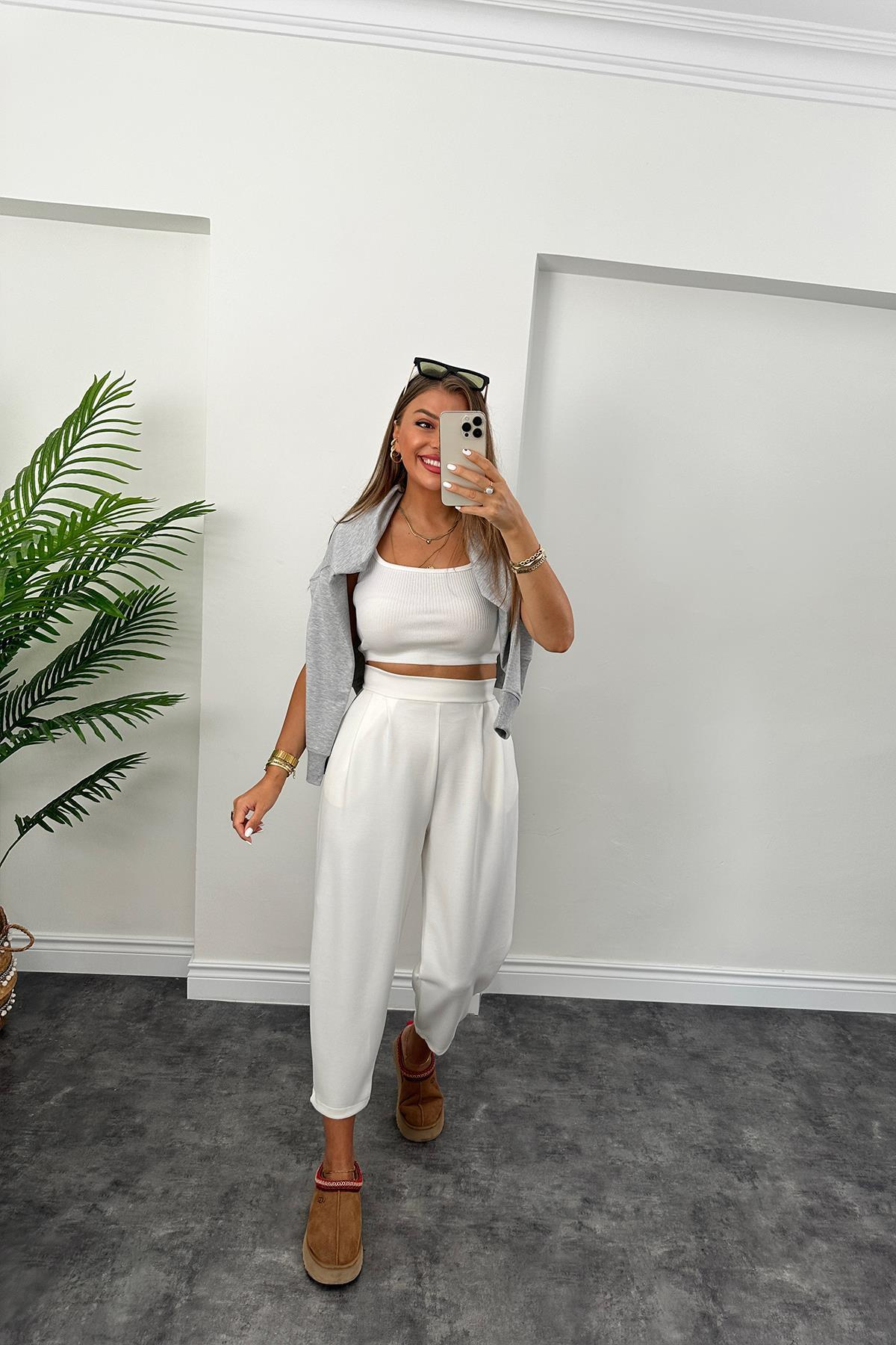 1. Sınıf Kalite Oysh Kumaş Beli Lastikli Harem Pantolon Ekru (A8982)