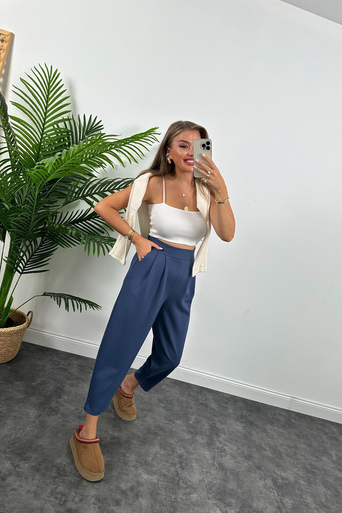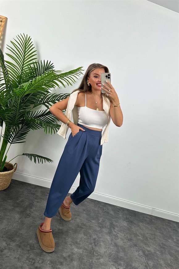 1. Sınıf Kalite Oysh Kumaş Beli Lastikli Harem Pantolon İndigo Mavi (A12280)