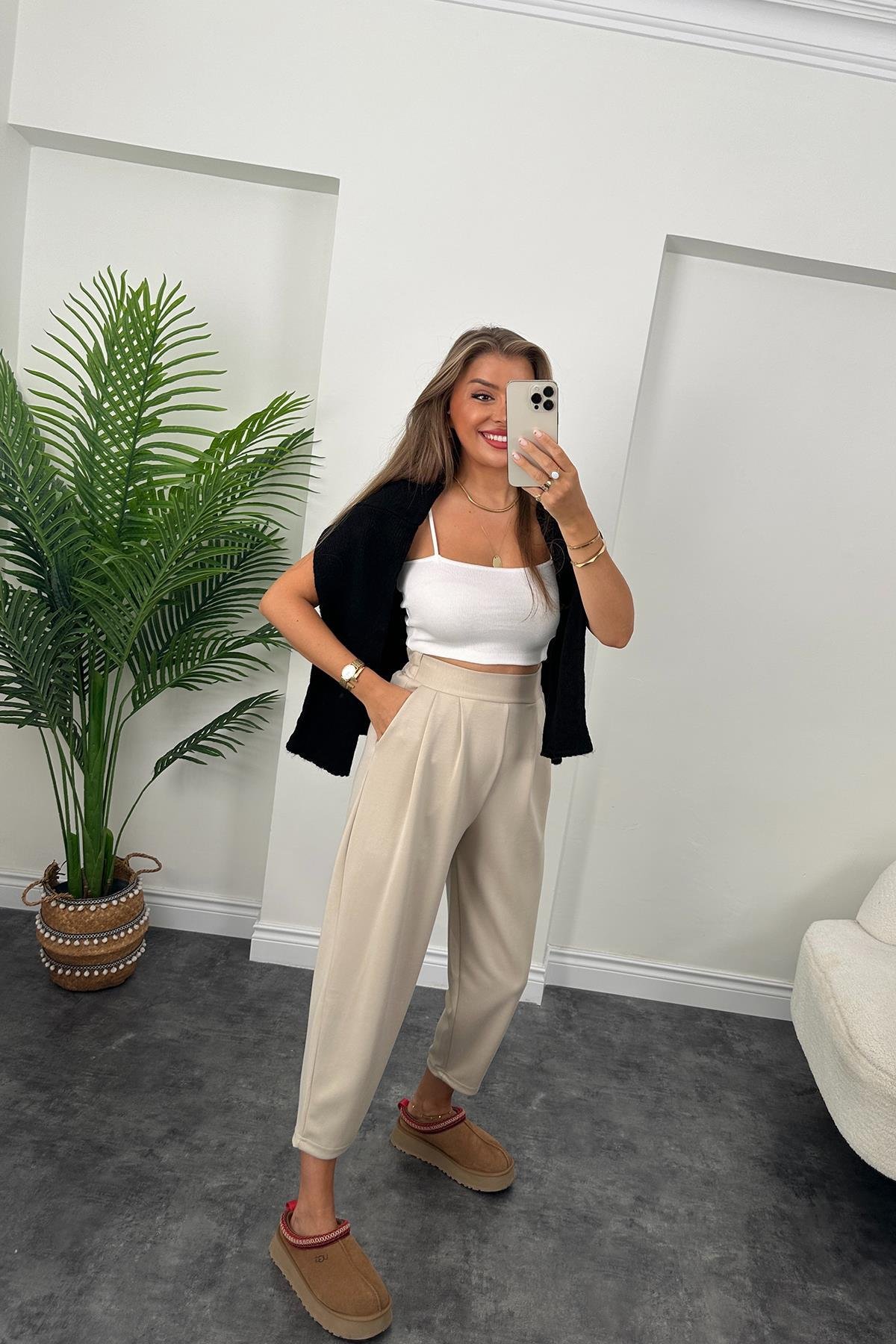1. Sınıf Kalite Oysho Kumaş Beli Lastikli Harem Pantolon Taş