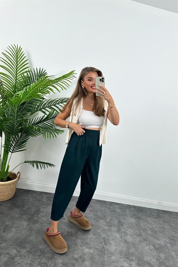 1. Sınıf Kalite Oysh Kumaş Beli Lastikli Harem Pantolon Zümrüt