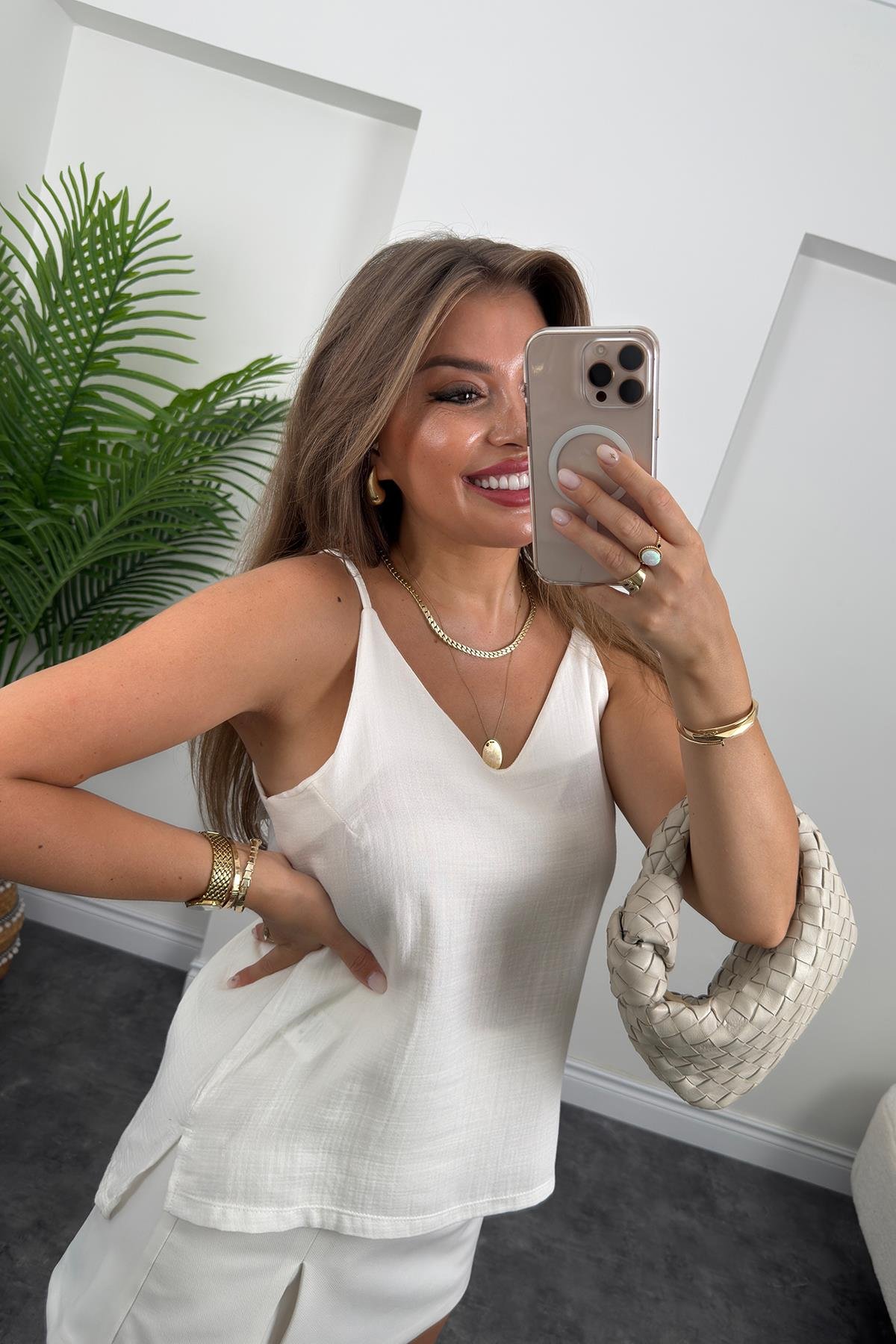 %100 Müslin Organik Kumaş İp Askılı Bluz Beyaz (A14624)
