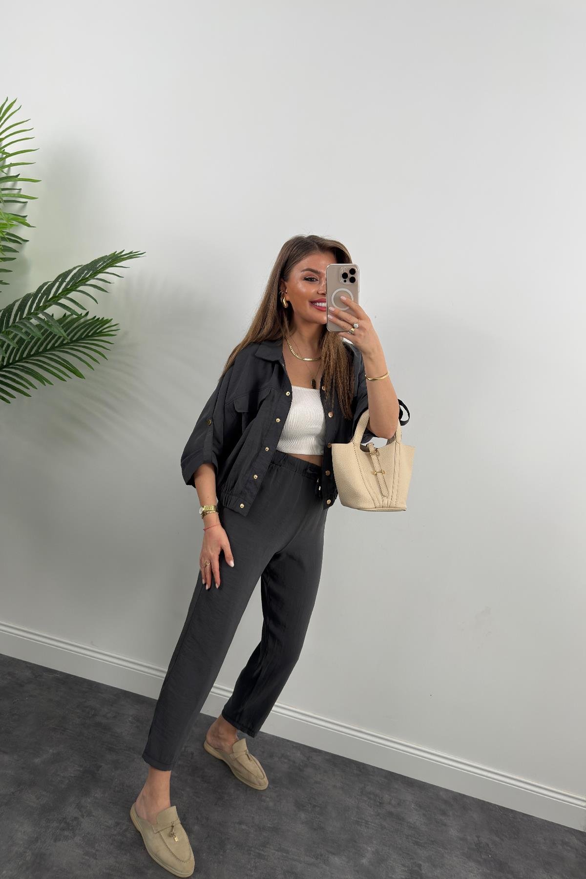 %100 Tensel Kumaş Bomber Ceketli Pantolon Takım Antrasit (A13336)
