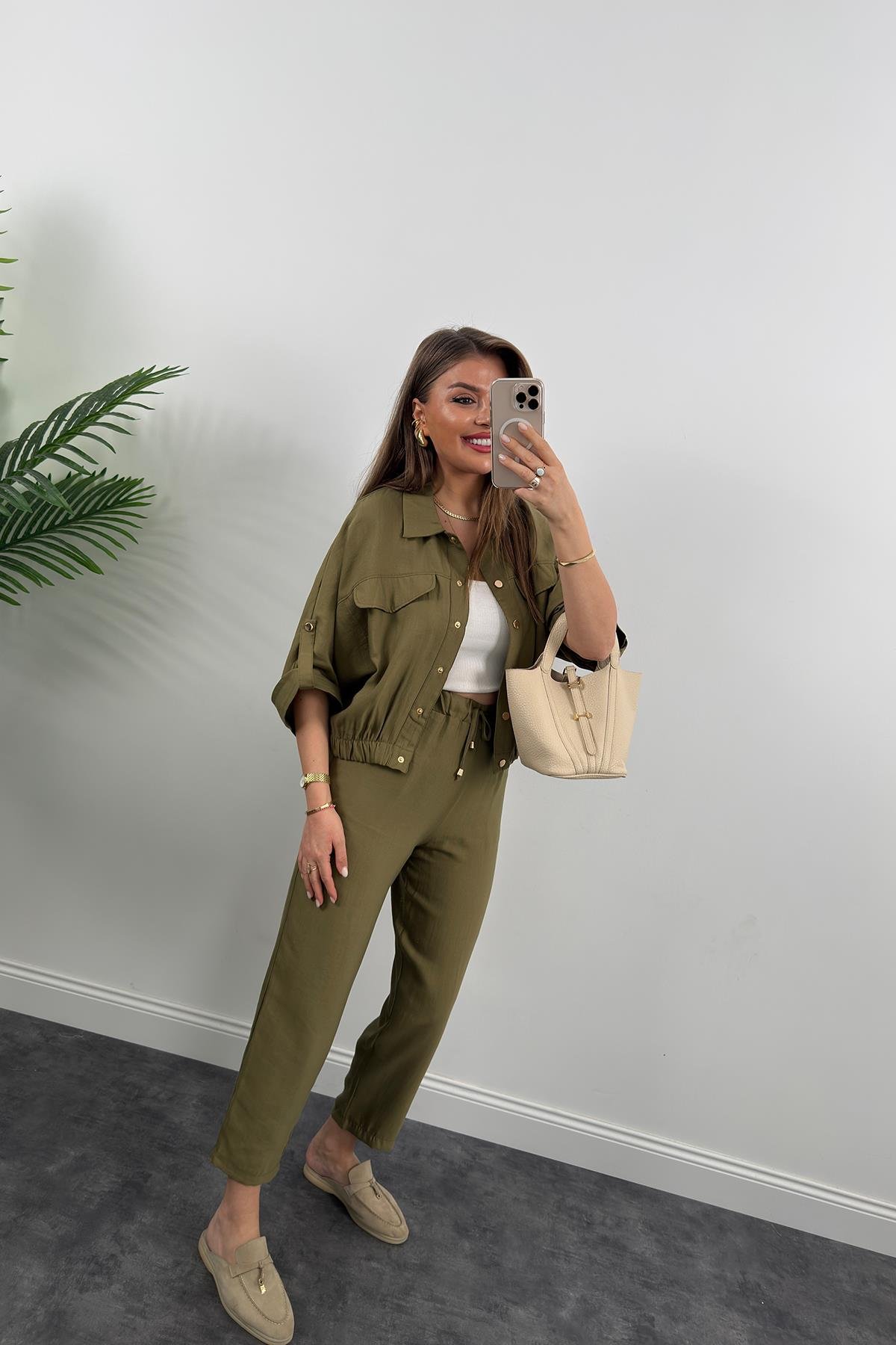 %100 Tensel Kumaş Bomber Ceketli Pantolon Takım Yeşil