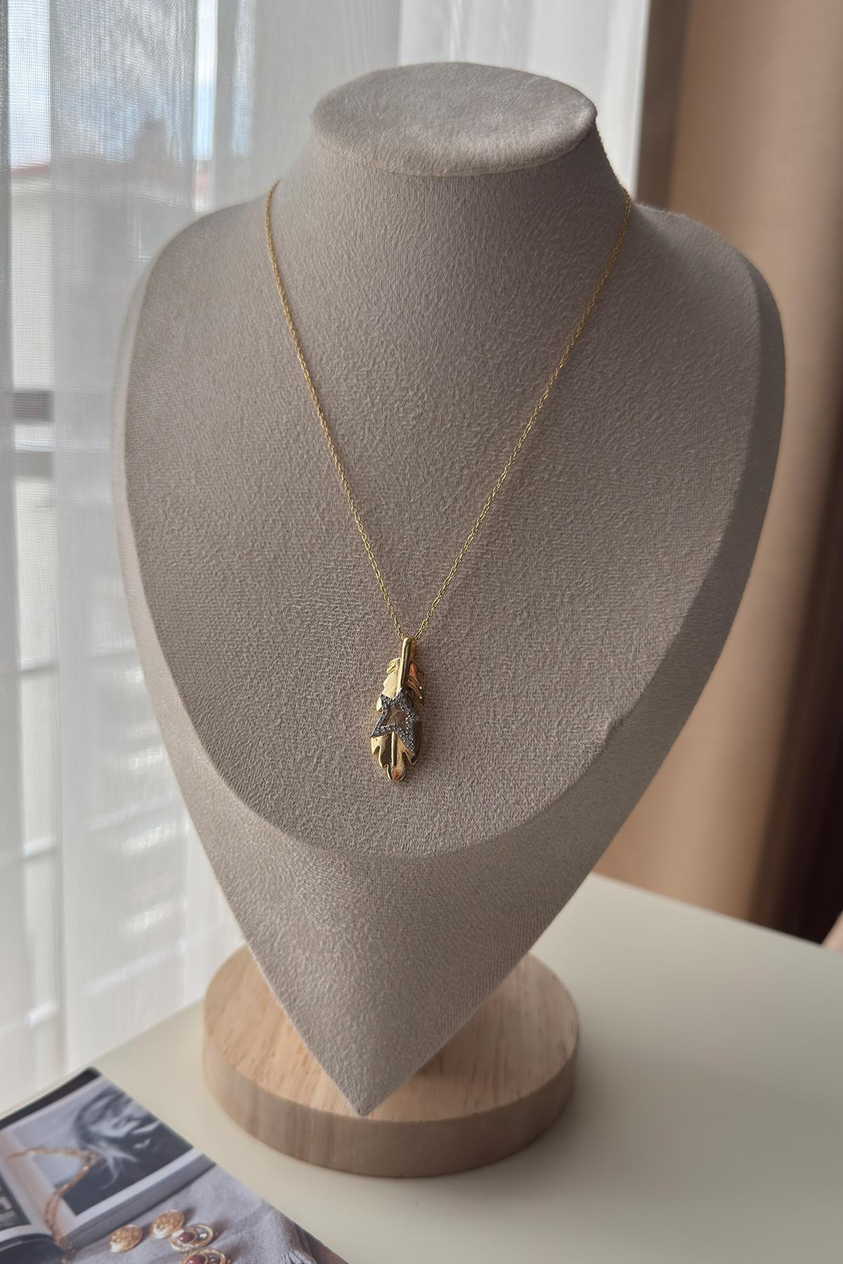 14 K Altın Kaplama Yaprak Üstü Yıldız Detaylı Kolye