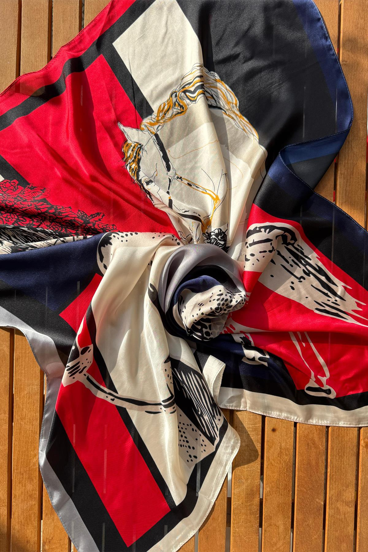At Desenli Kırmızı Fular (90*90) (A15208)