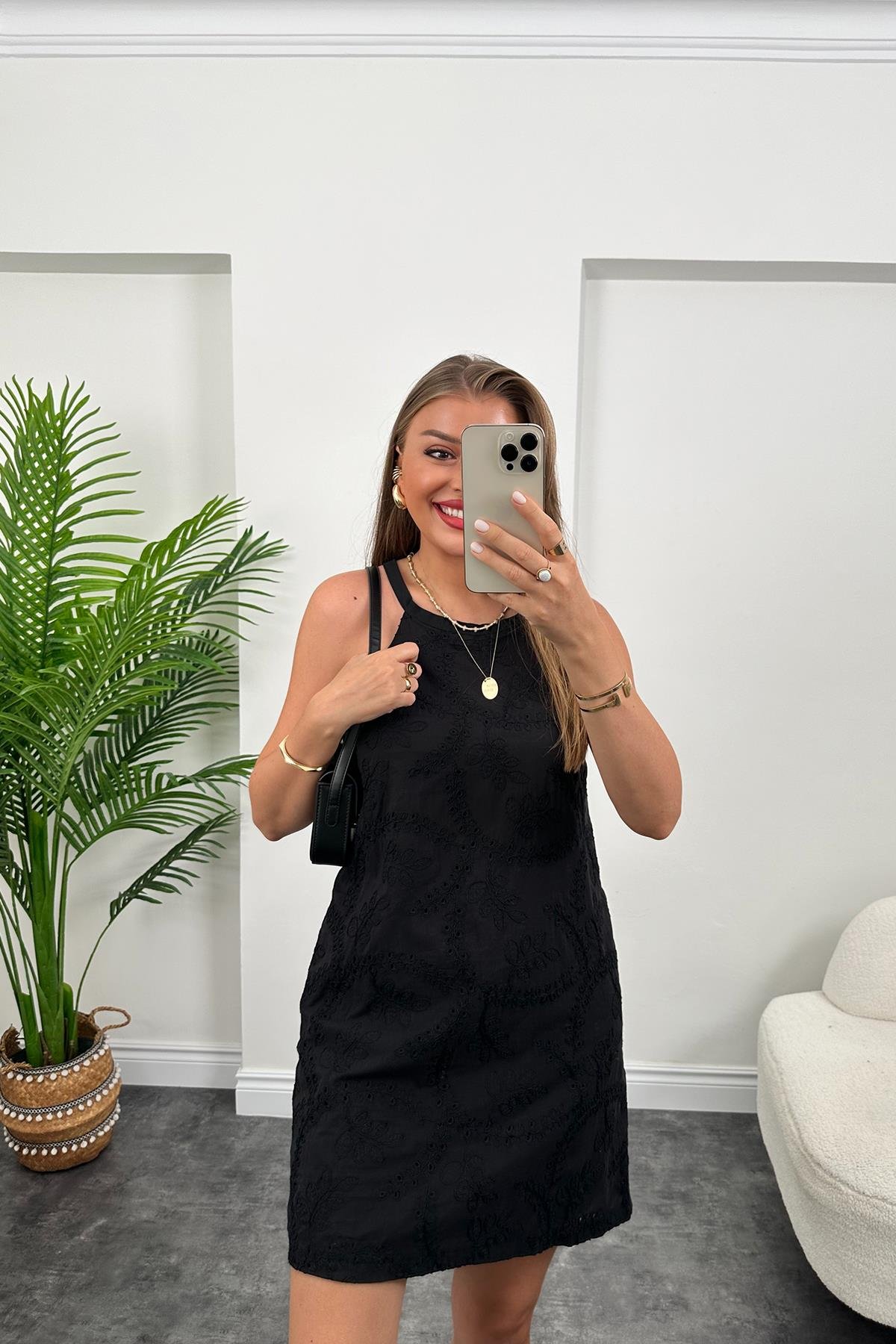 Bebe Marka Lüx Kalite Komple Nakışlı Astarlı Elbise Siyah