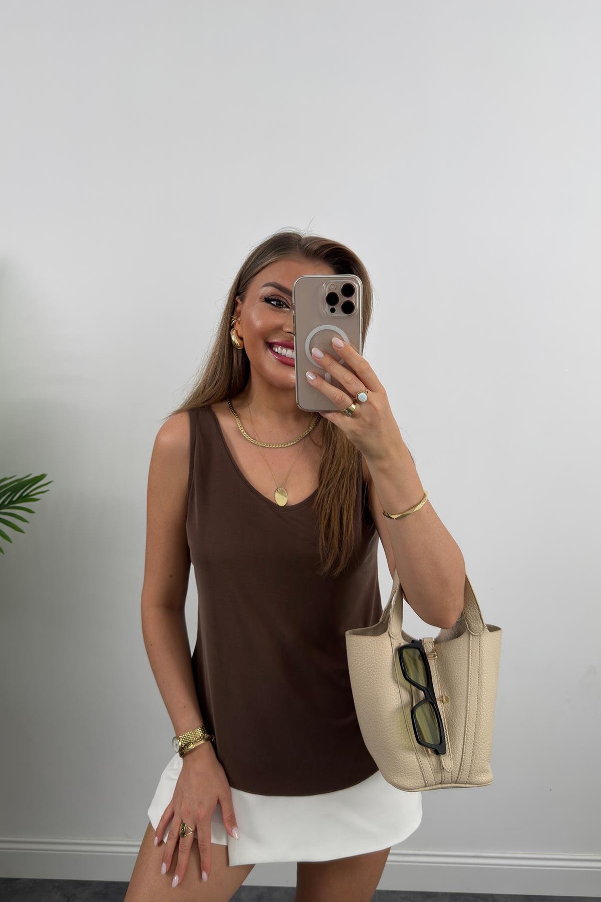 Bebe Marka Lüx Kalite Modal Kumaş Atlet Kahverengi