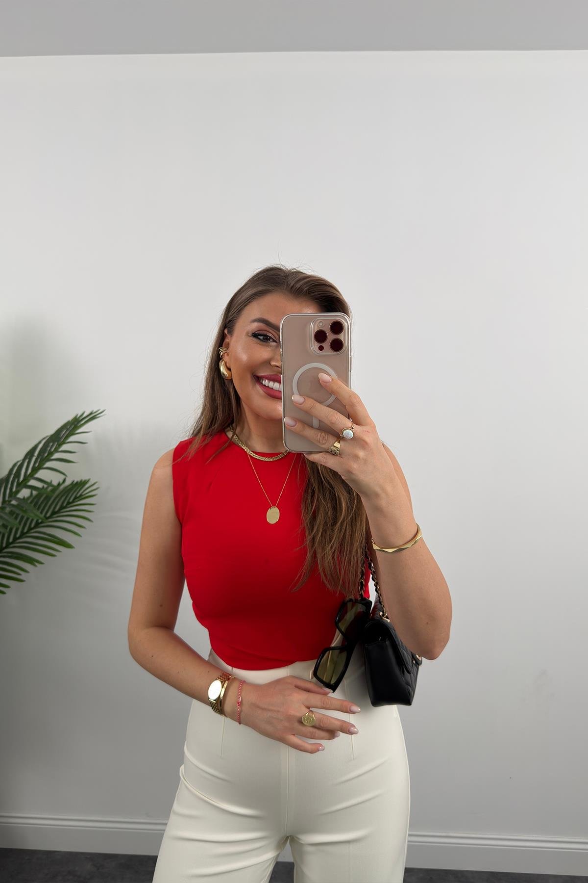 Bebe Marka Sırtı Fermuarlı Önü Zarf Klasik Kumaş Bluz Kırmızı