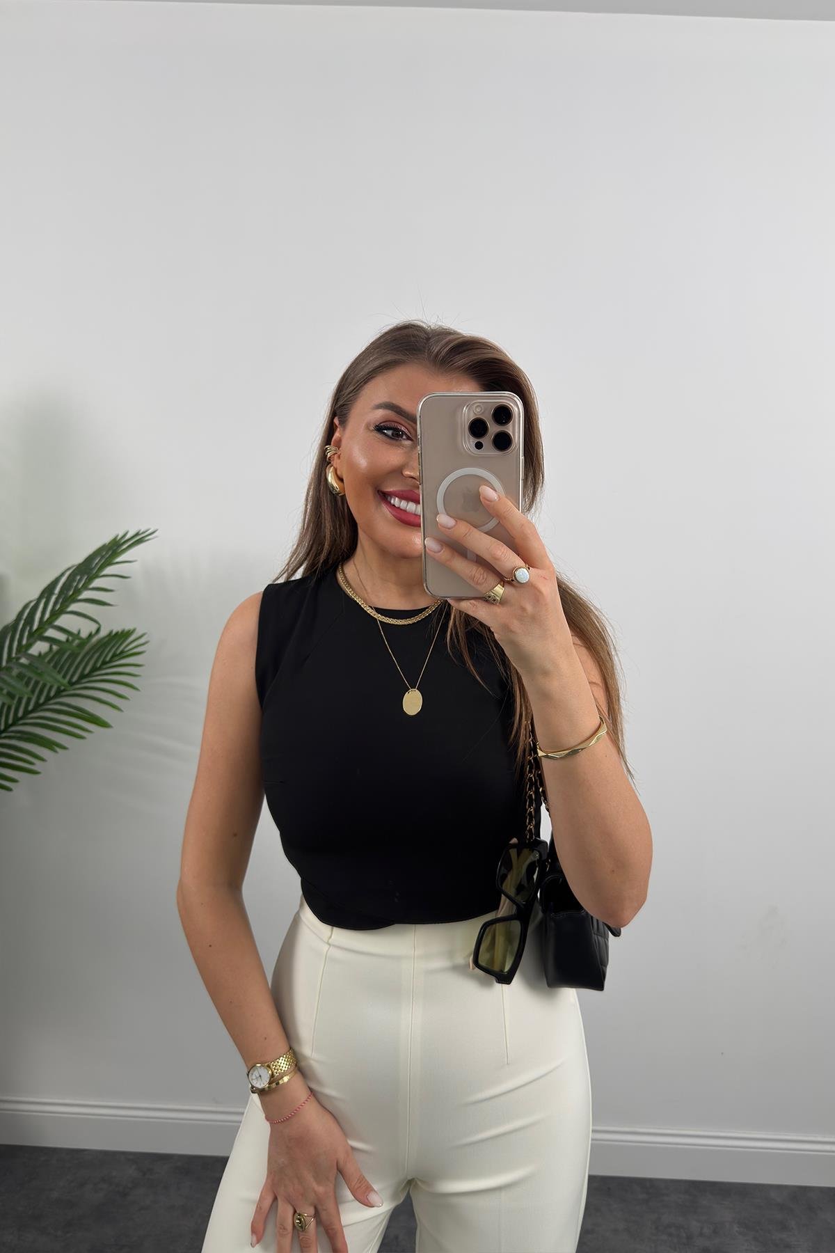 Bebe Marka Sırtı Fermuarlı Önü Zarf Klasik Kumaş Bluz Siyah (A13366)