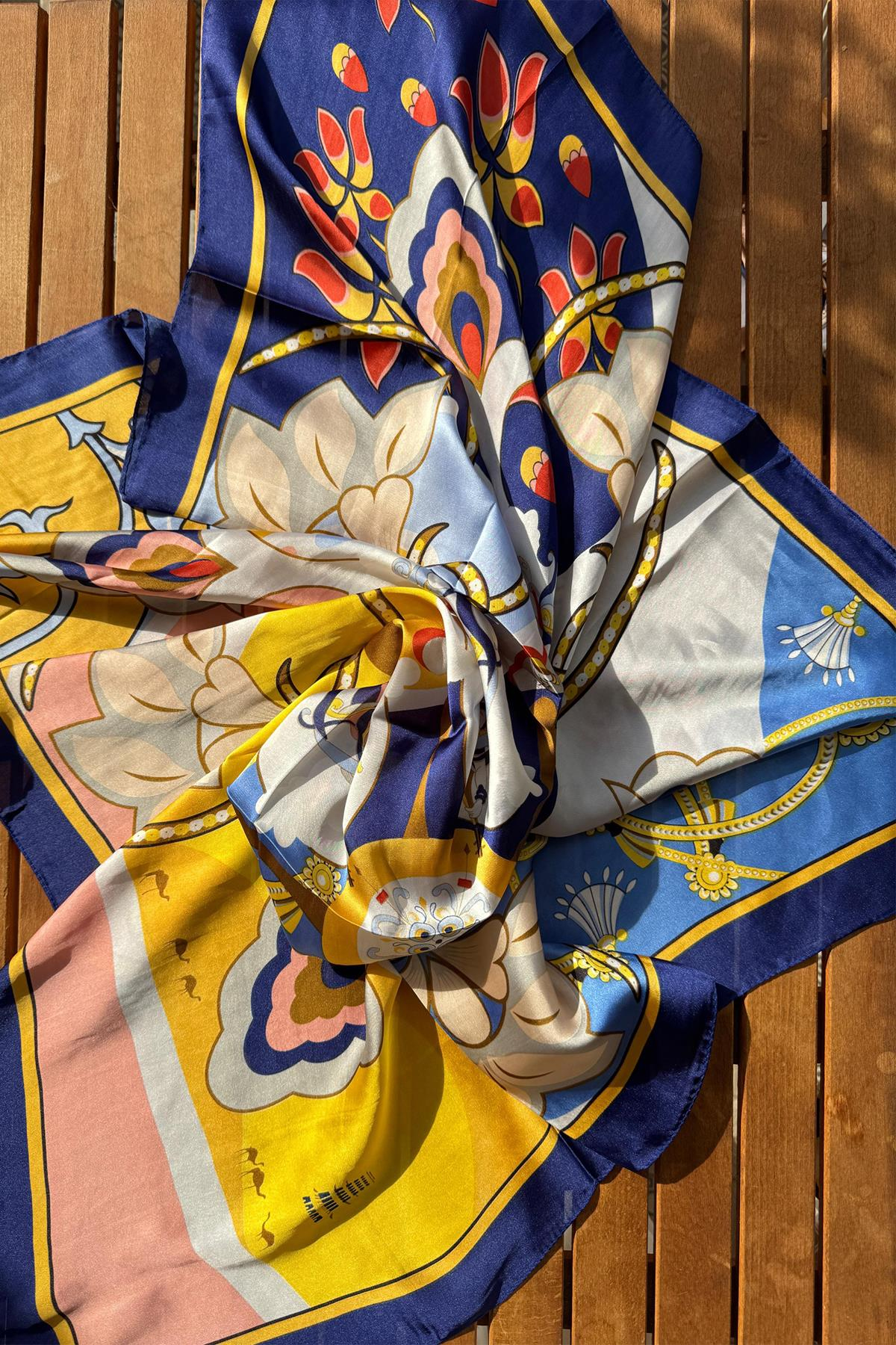 Çiçek Desenli Mavi Fular (90*90) (A15207)