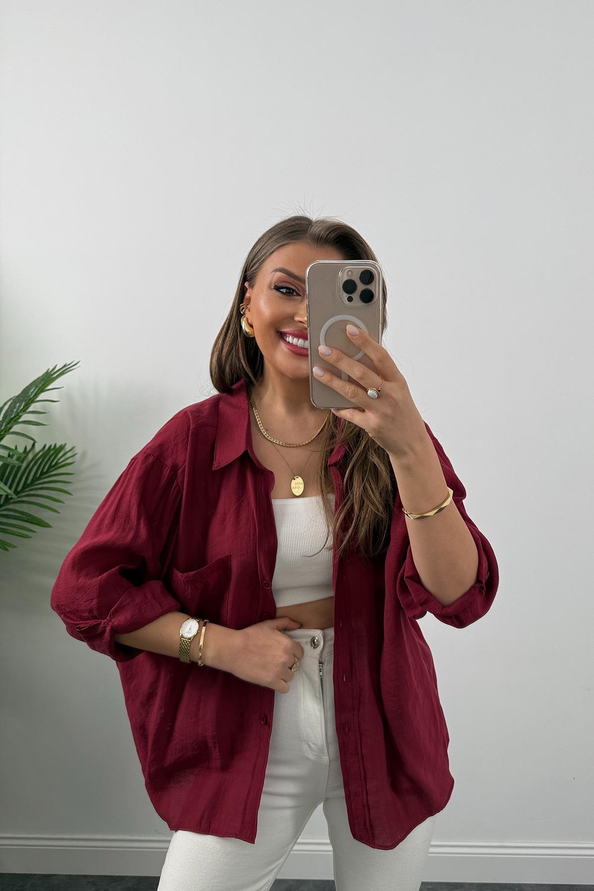Lüx Kalite Basic Salaş Tensel Gömlek Bordo