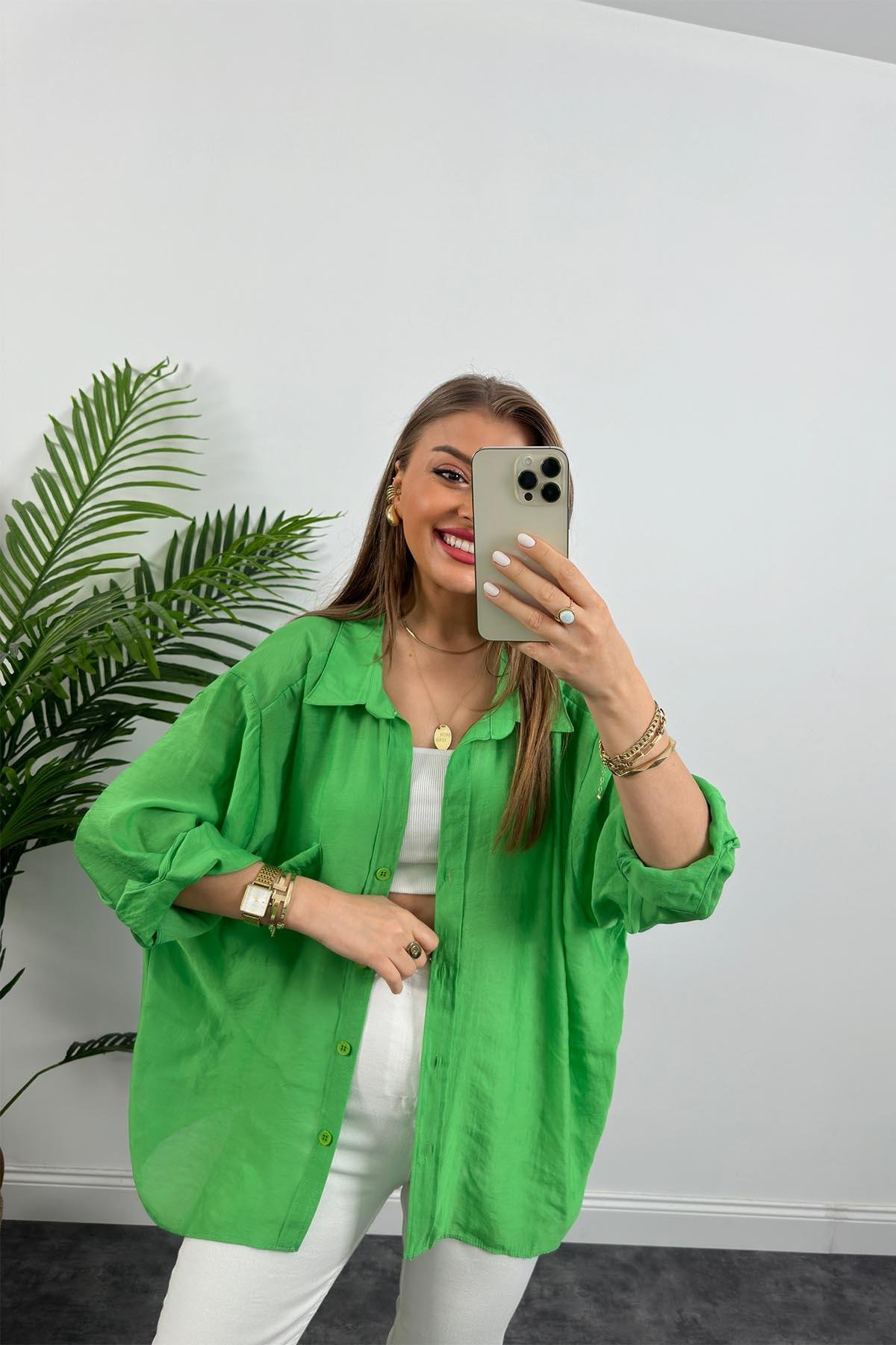 Lüx Kalite Basic Salaş Tensel Gömlek Çimen Yeşili