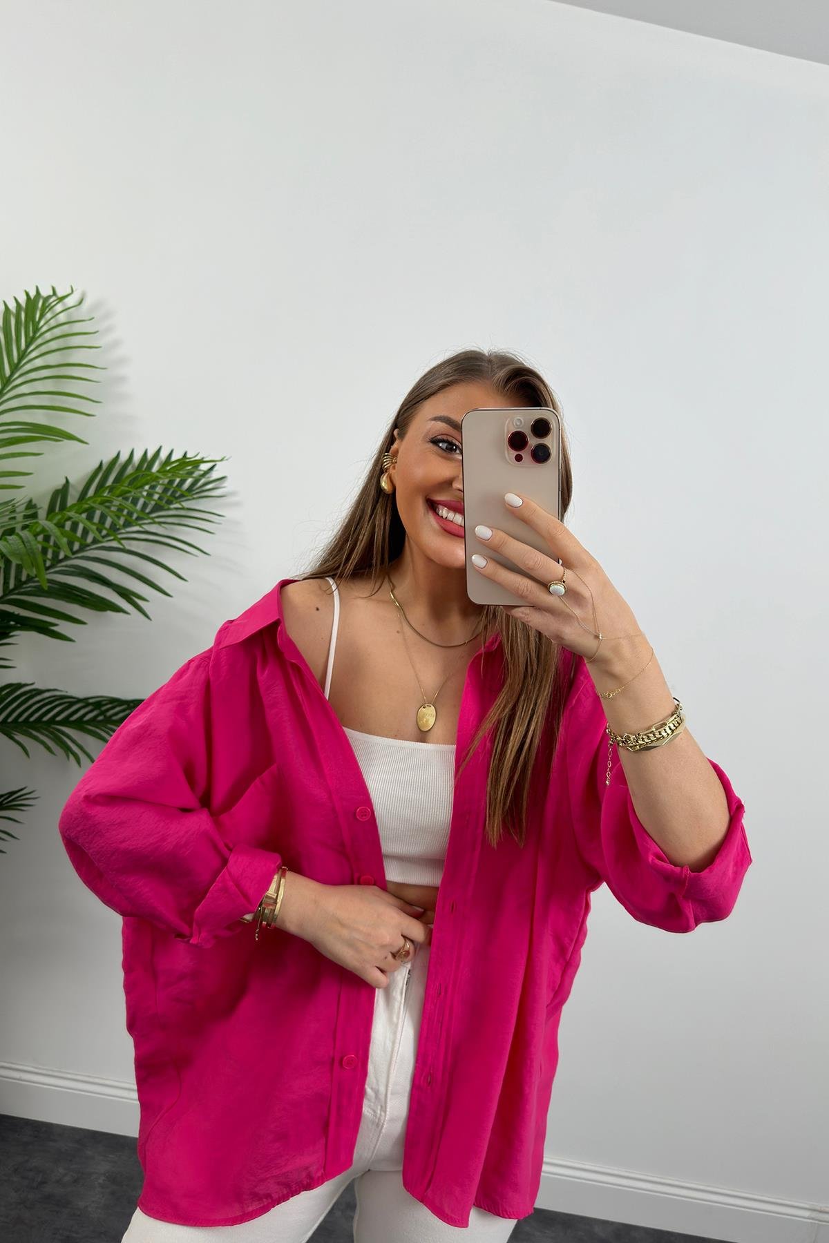 Lüx Kalite Basic Salaş Tensel Gömlek Fuşya