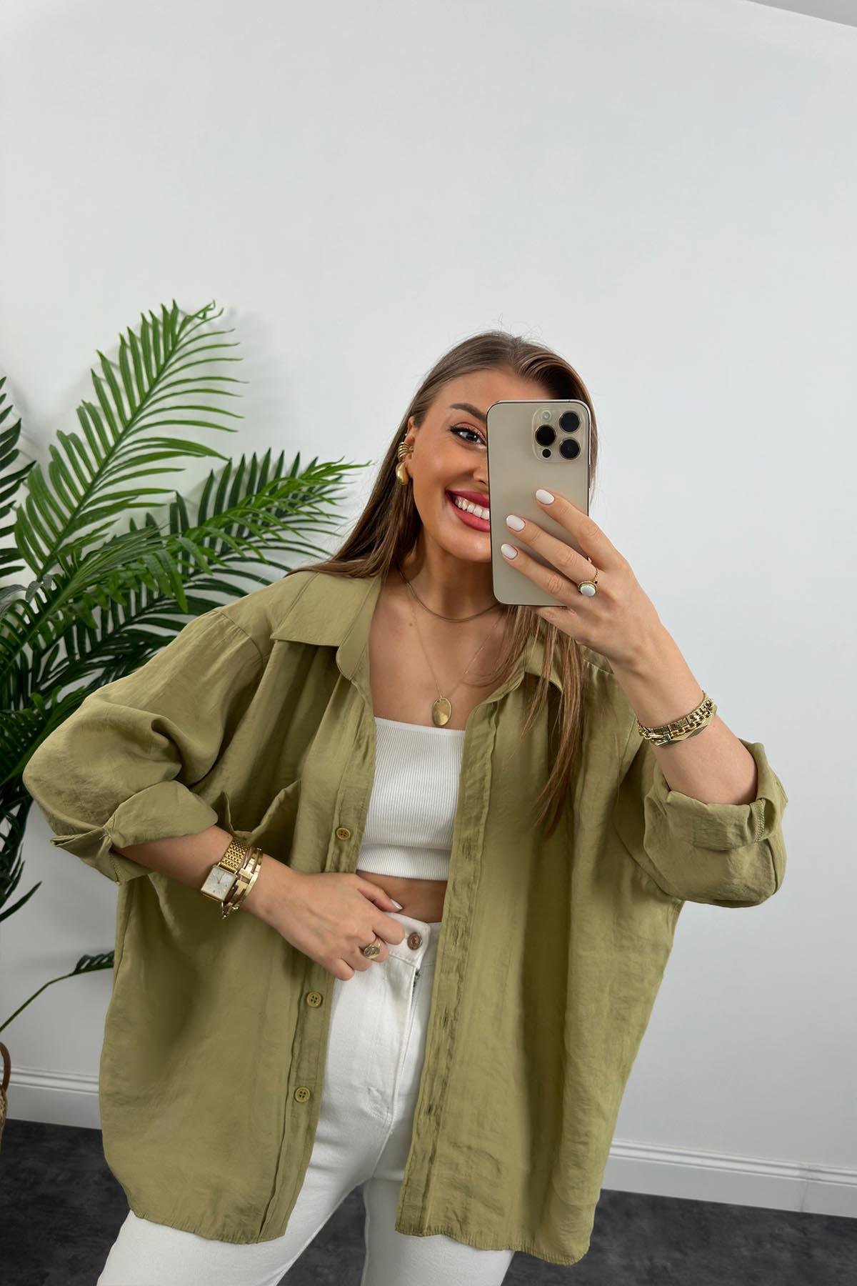 Lüx Kalite Basic Salaş Tensel Gömlek Haki (A10501)