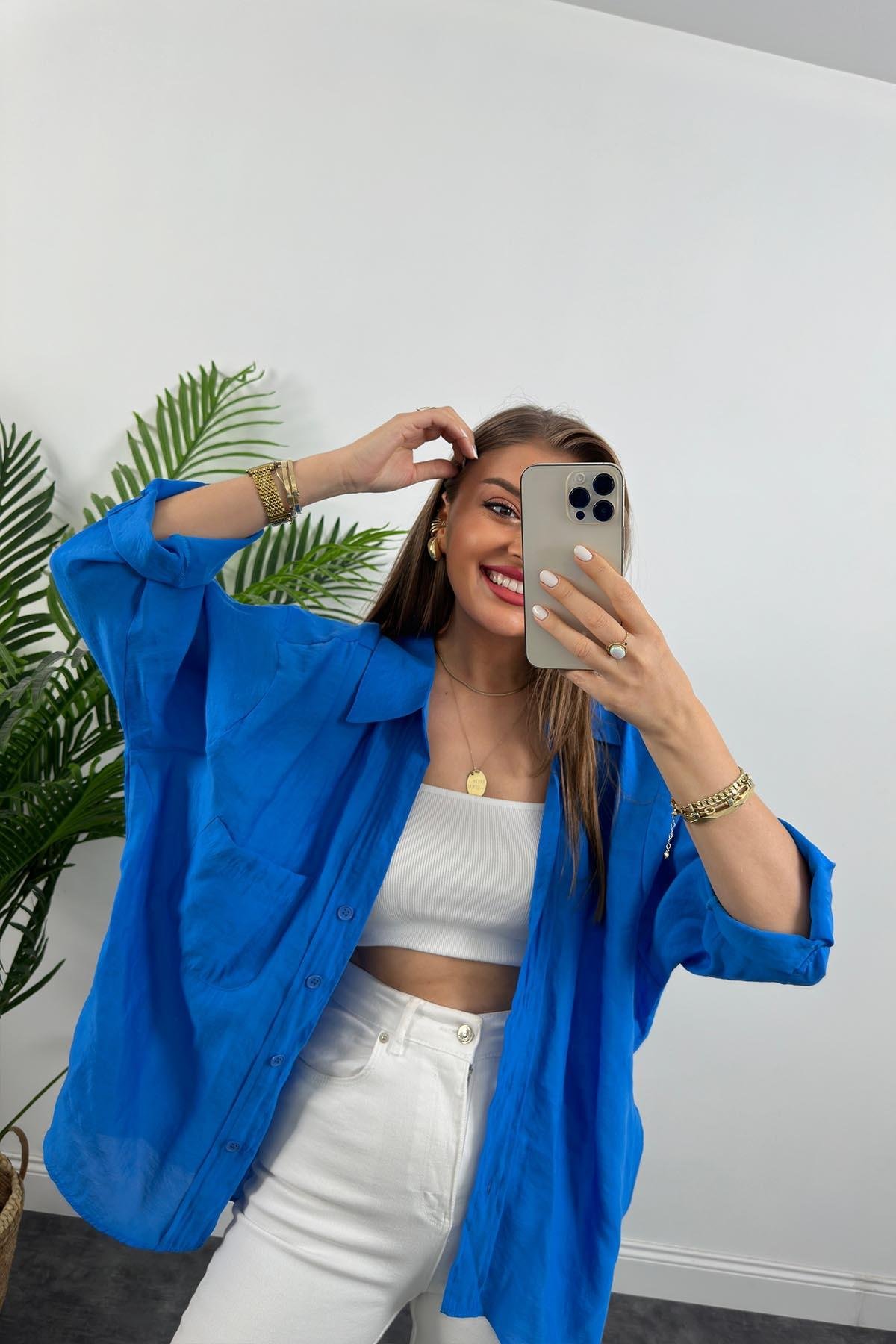 Lüx Kalite Basic Salaş Tensel Gömlek Mavi