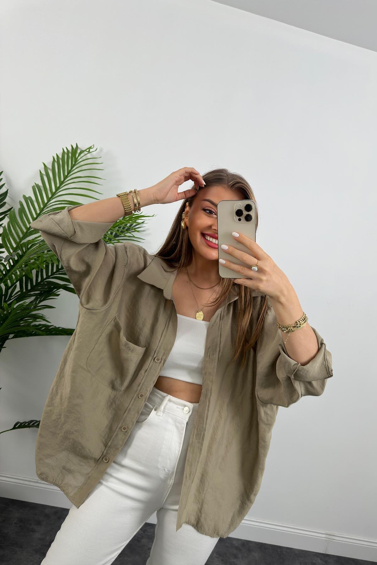 Lüx Kalite Basic Salaş Tensel Gömlek Olive
