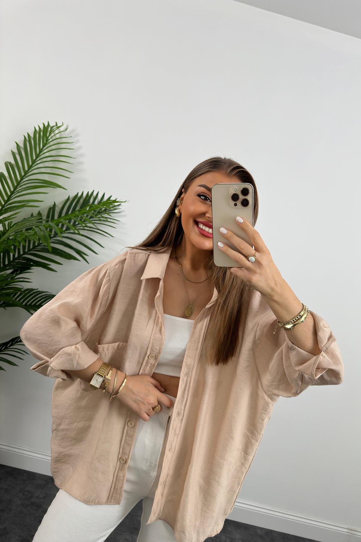 Lüx Kalite Basic Salaş Tensel Gömlek Taş