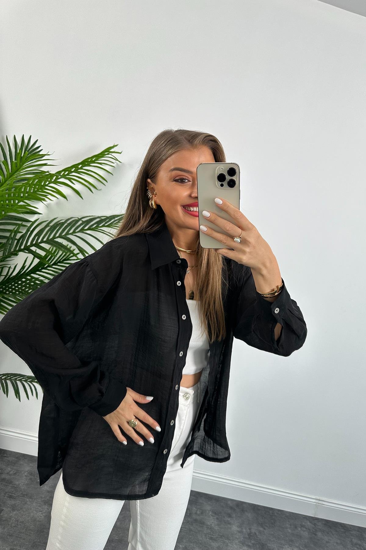 Lüx Kalite Modal Kumaş Tam Kol İpeksi Gömlek Siyah