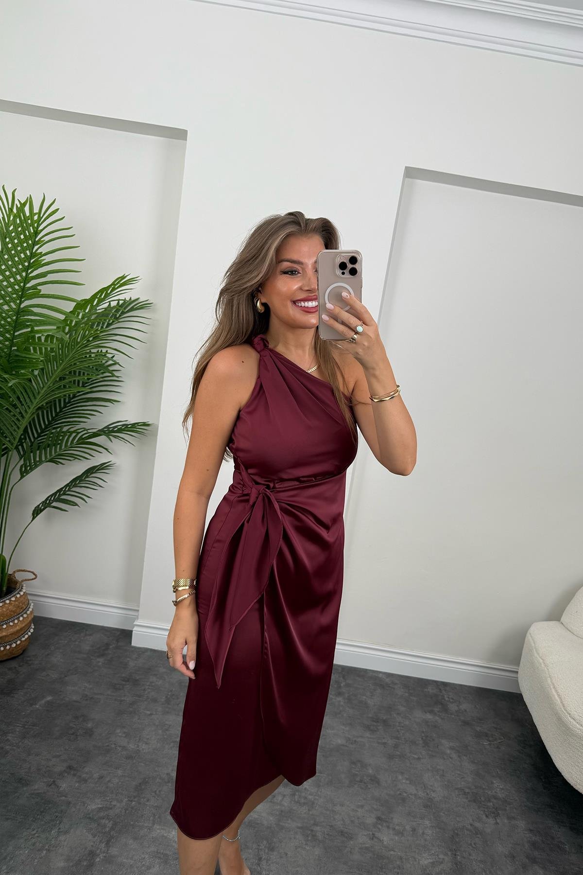 Lüx Kalite Tek Omuz Midi Boy Anvelop Elbise Bordo (A14684)
