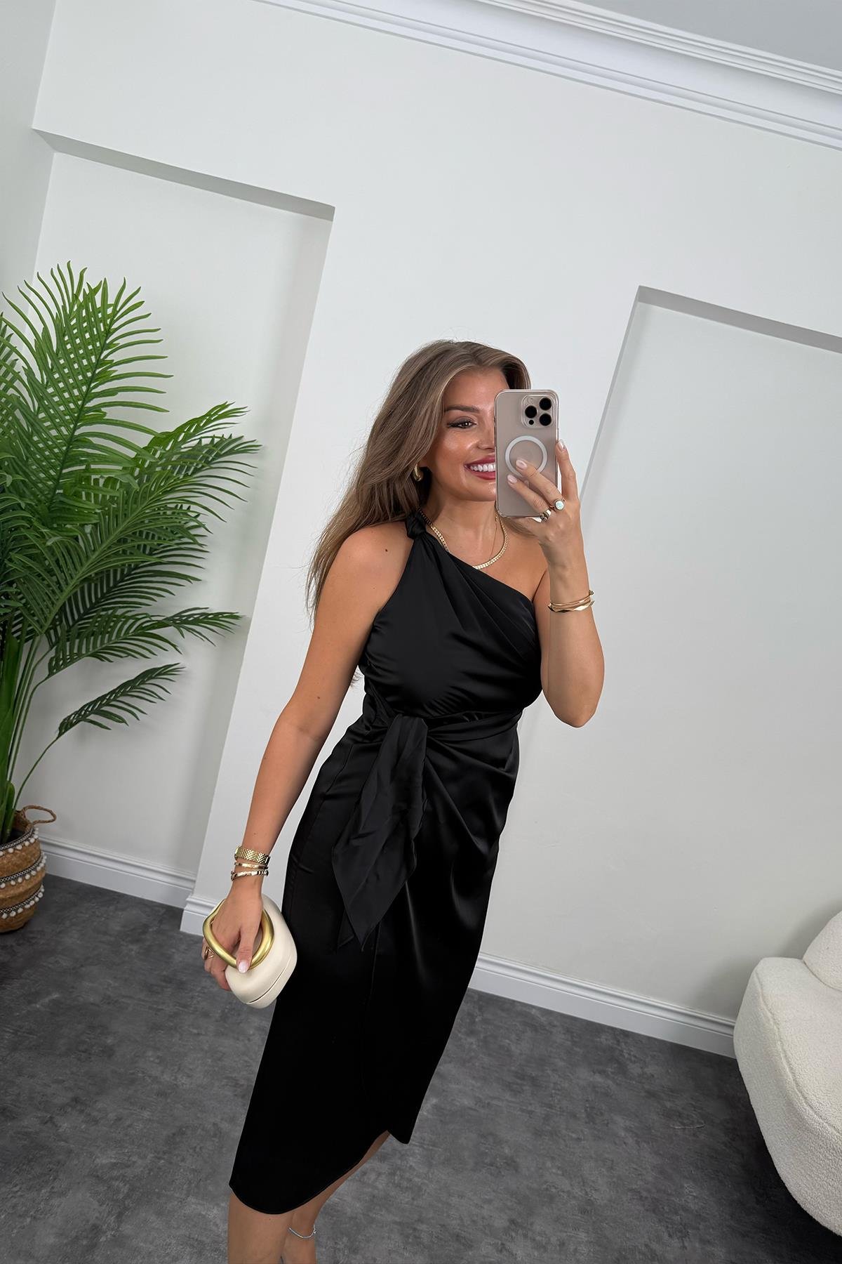 Lüx Kalite Tek Omuz Midi Boy Anvelop Elbise Siyah (A11562)
