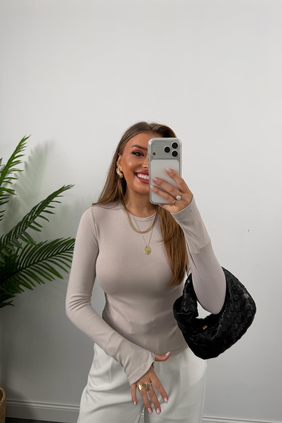 Massi Model Tam Pamuklu Soft Touch Likralı Basic Body Taş (A15406)