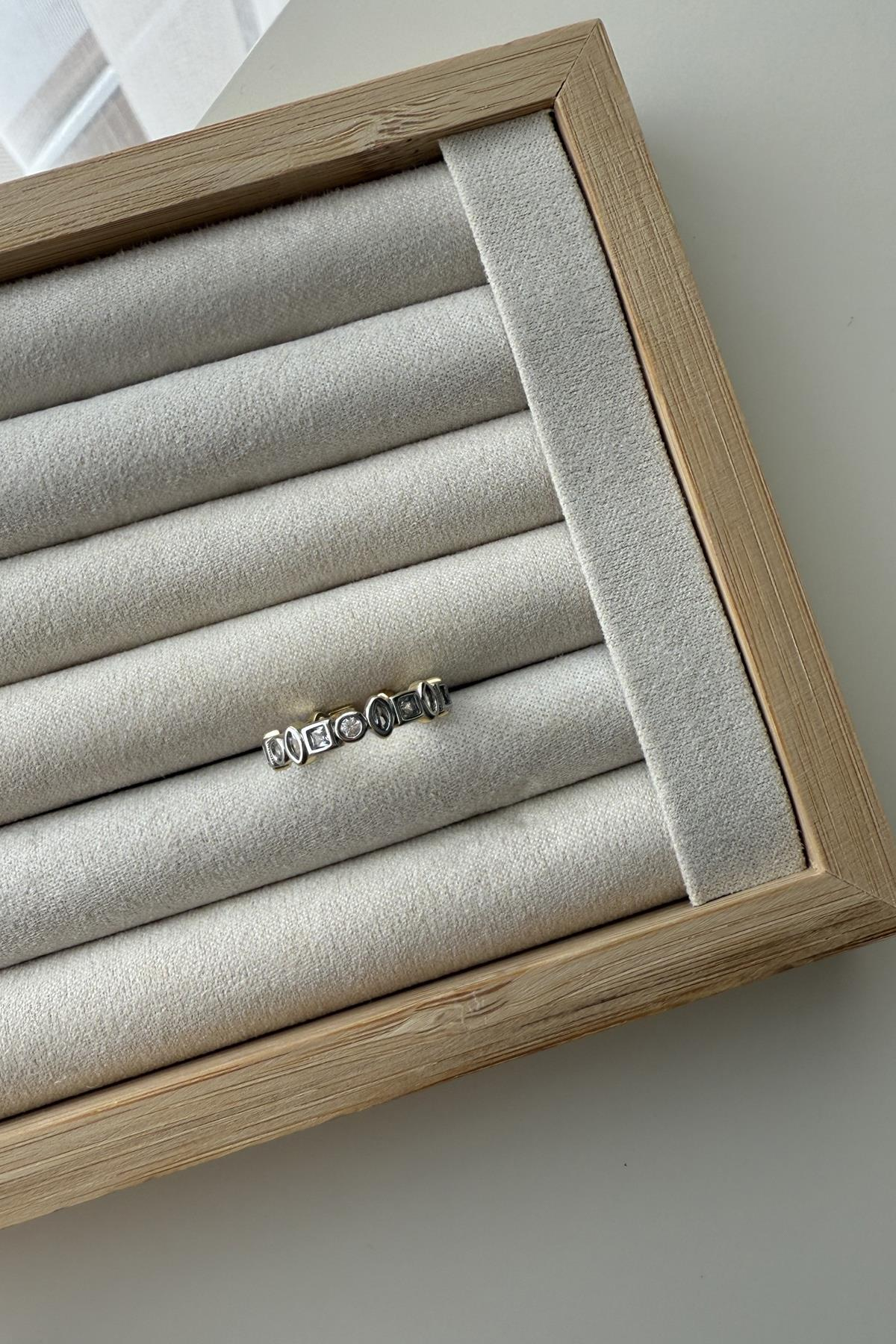 Özel Seri Asimetrik Taş Detaylı Mix Yüzük