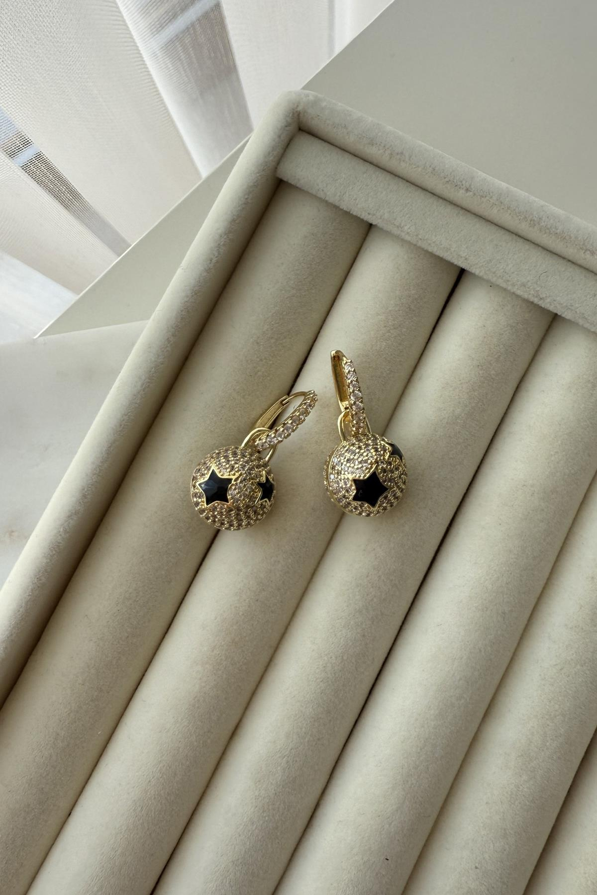 Özel Seri Marka Model Yıldızlı Top Küpe(Siyah)