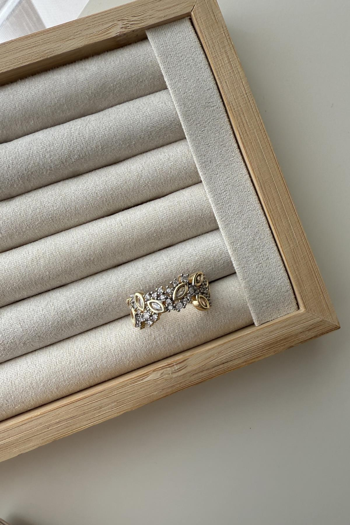 Özel Seri Zirkon Taşlı Badem Taş Detaylı Mix Yüzük
