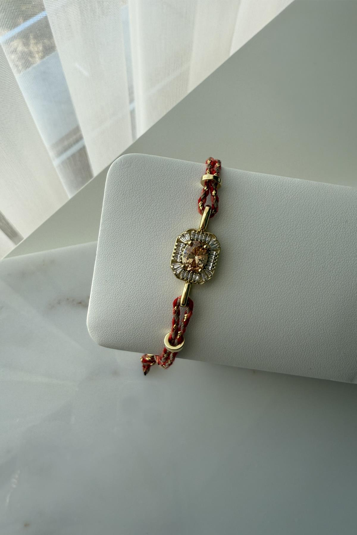 Özel Seri Zirkon Taşlı Turuncu İp Asansörlü Bileklik
