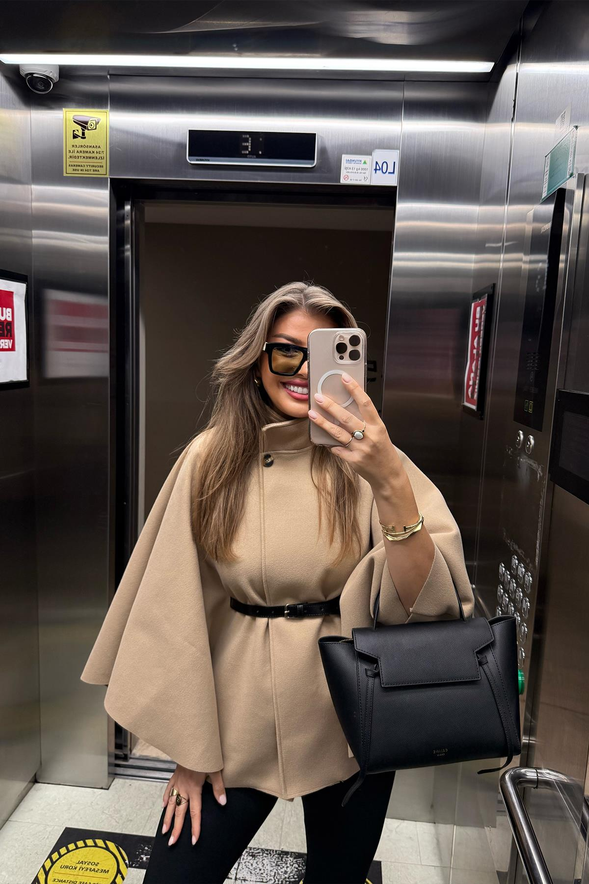 Pinterest Kemerli Kaşe Panço Kaban Camel (A15219)