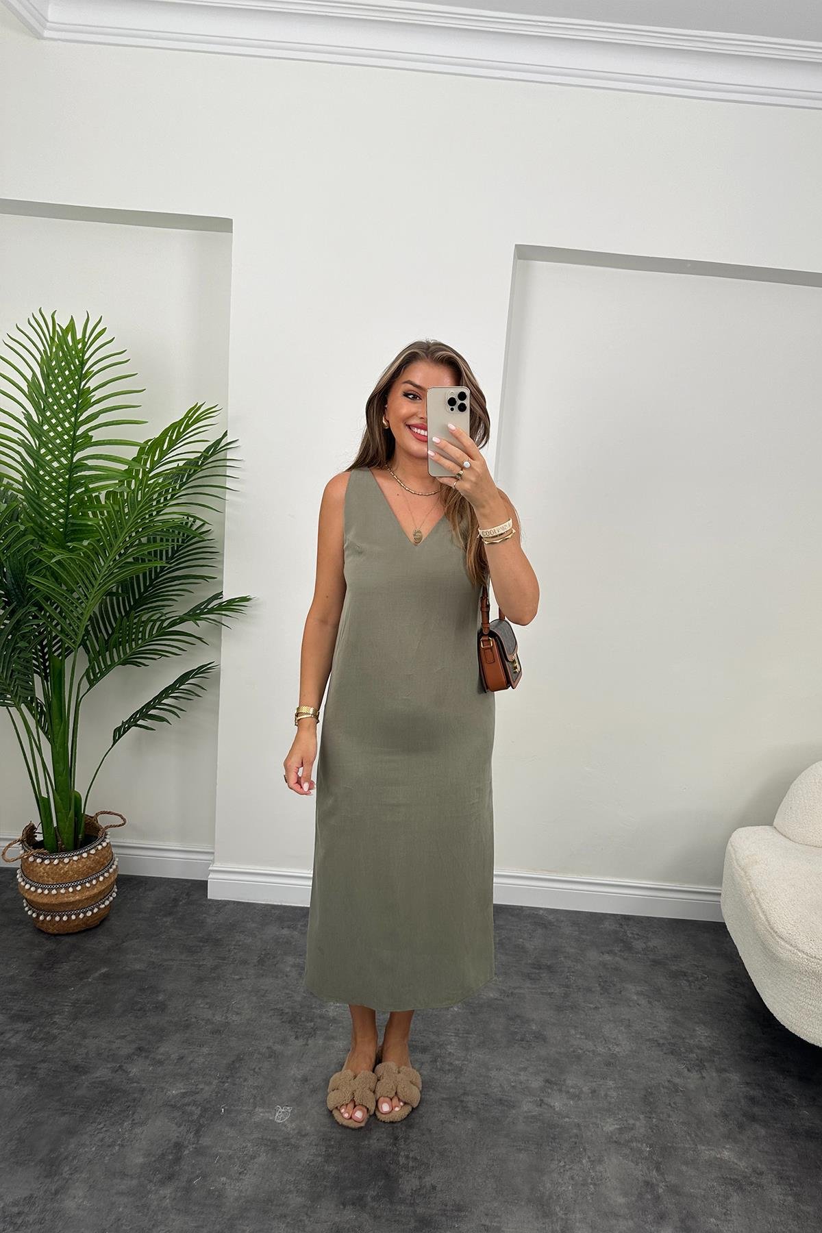 Premium Kalite 4 Mevsim Basic Tensel Elbise Haki (A11849)