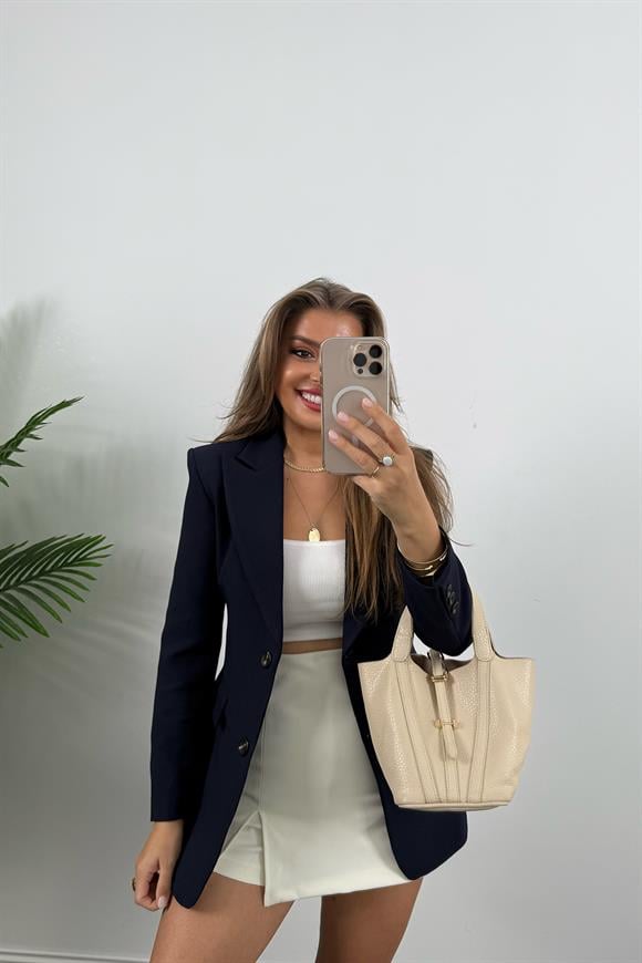 Premium Kalite Belden Oturtmalı Double Atlas Kumaş Ceket Lacivert