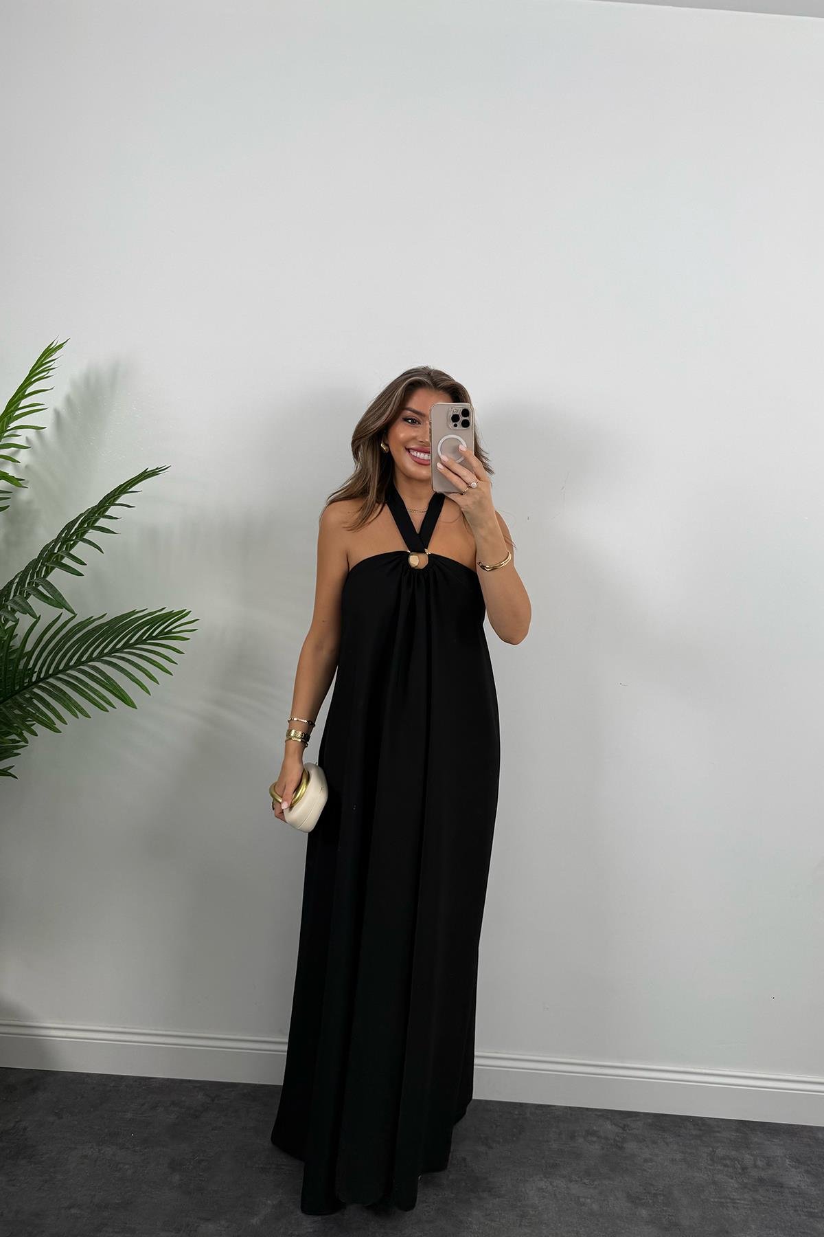 Premium Seri Boyun Detaylı Maxi Dökümlü Elbise