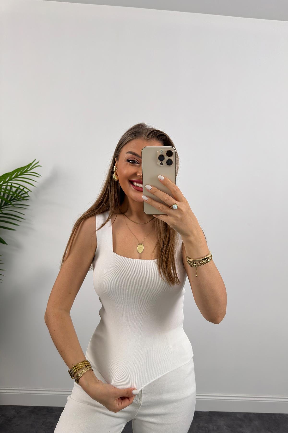 Uzun Boy Elit Triko Kare Yaka Likralı Atlet Beyaz (A10417)