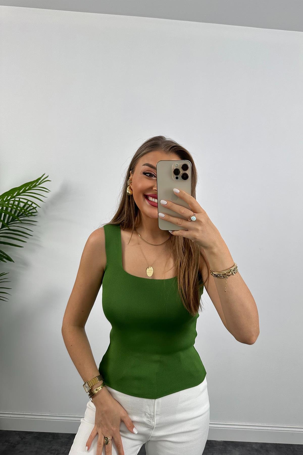 Uzun Boy Elit Triko Kare Yaka Likralı Atlet Yağ Yeşili (A10424)