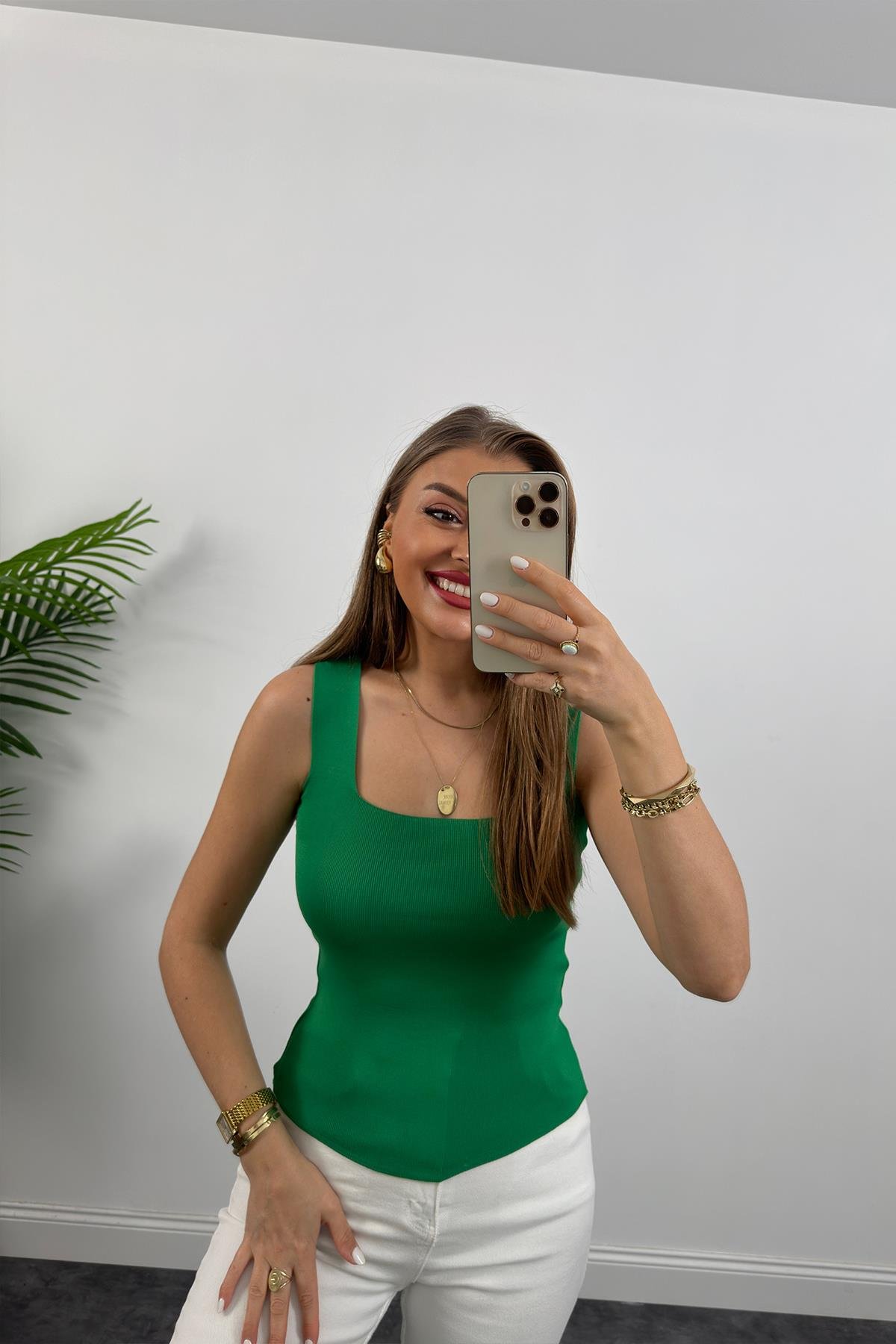 Uzun Boy Elit Triko Kare Yaka Likralı Atlet Yeşil (A10422)
