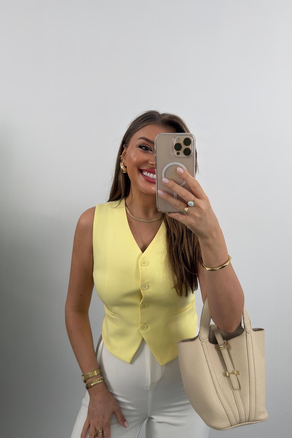 Zra Model Double Atlas Kumaş Astarlı Basic Yelek Pastel Sarı (A14225)