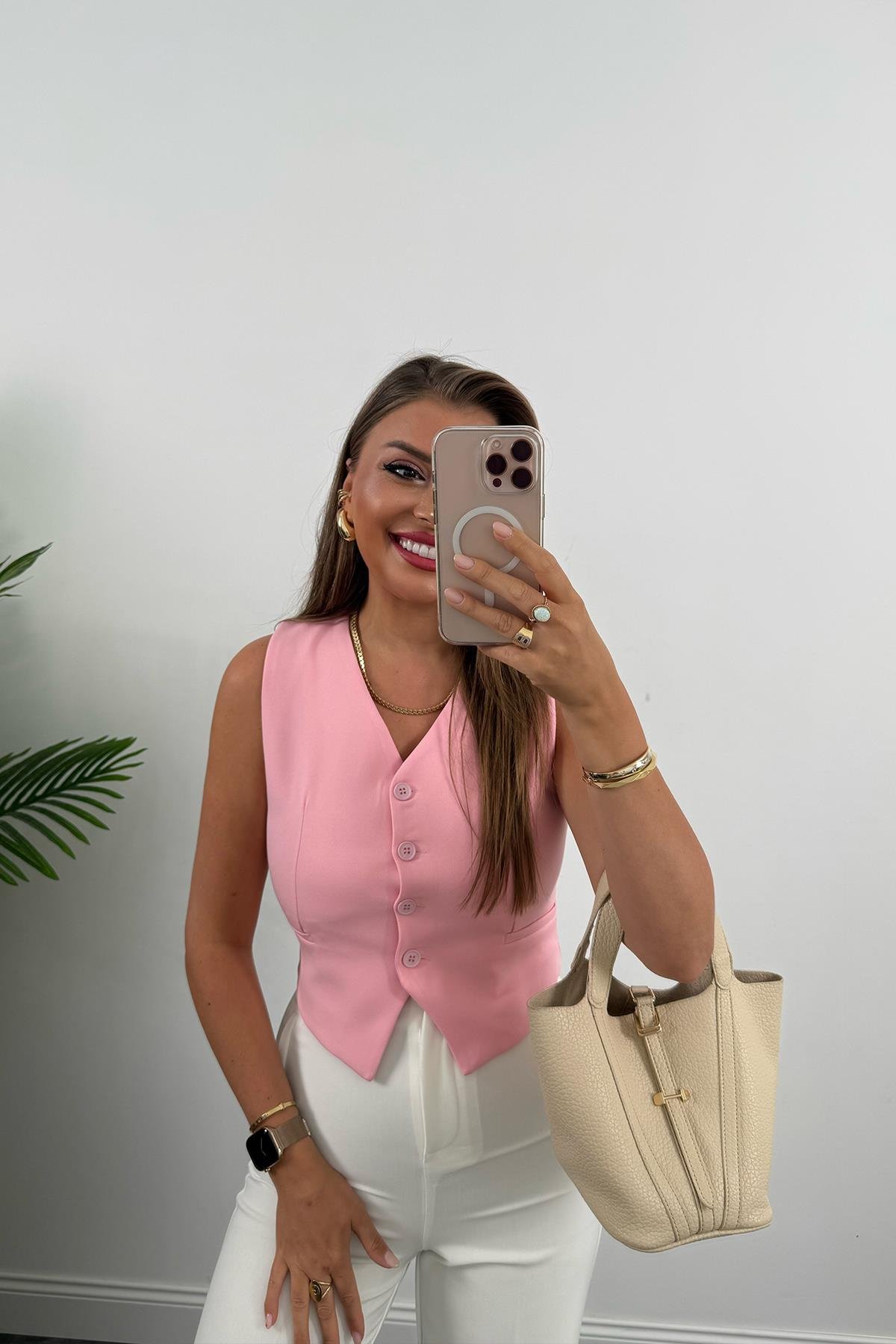 Zra Model Double Atlas Kumaş Astarlı Basic Yelek Tatlı Pembe (A13658)